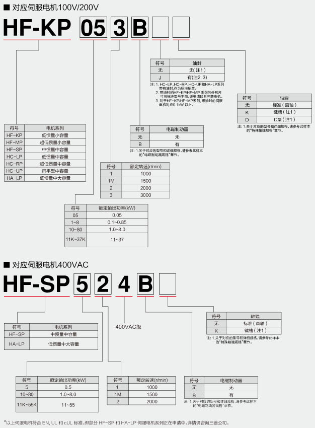 三菱伺服放器器對(duì)應(yīng)伺服電機(jī)型號(hào)表示