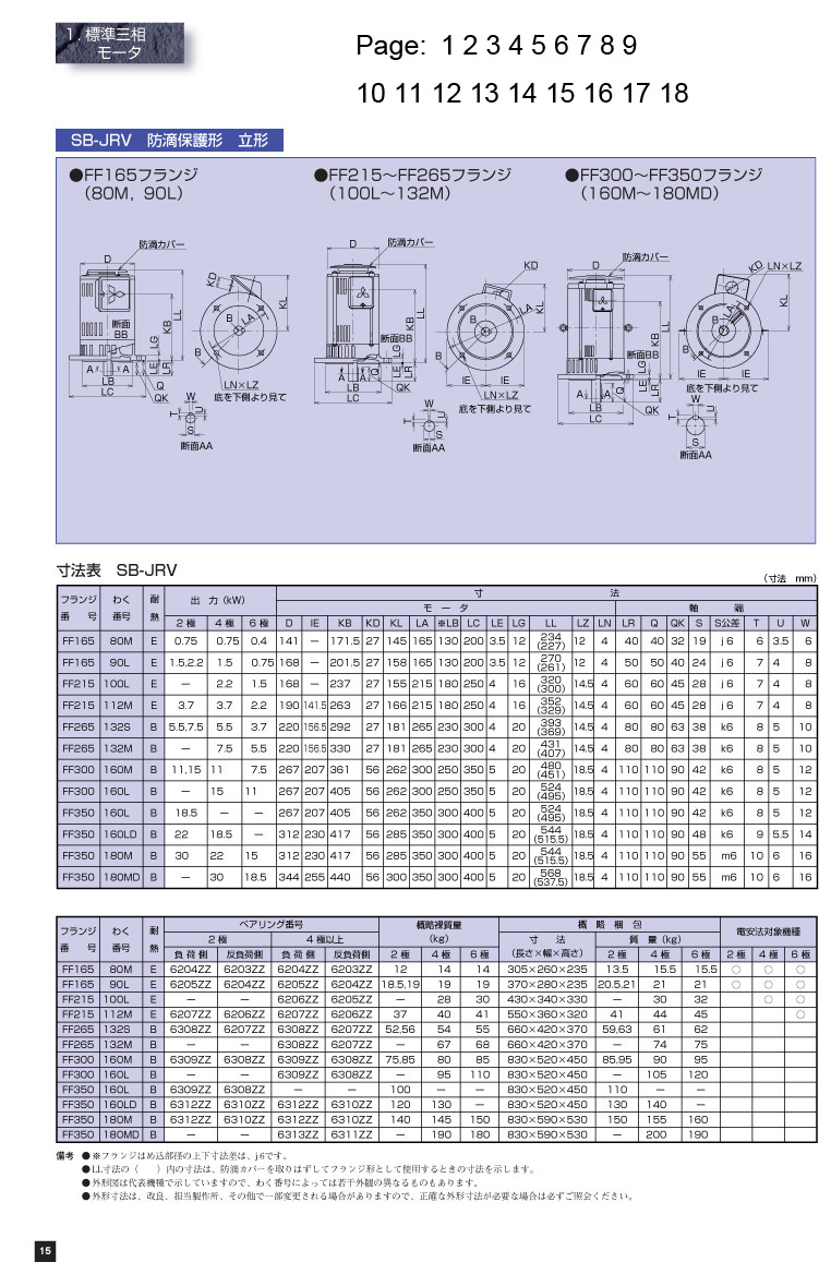 防滴保護(hù)型立形SB-JRV外型尺寸圖 機(jī)座號(hào) 80M-180MD