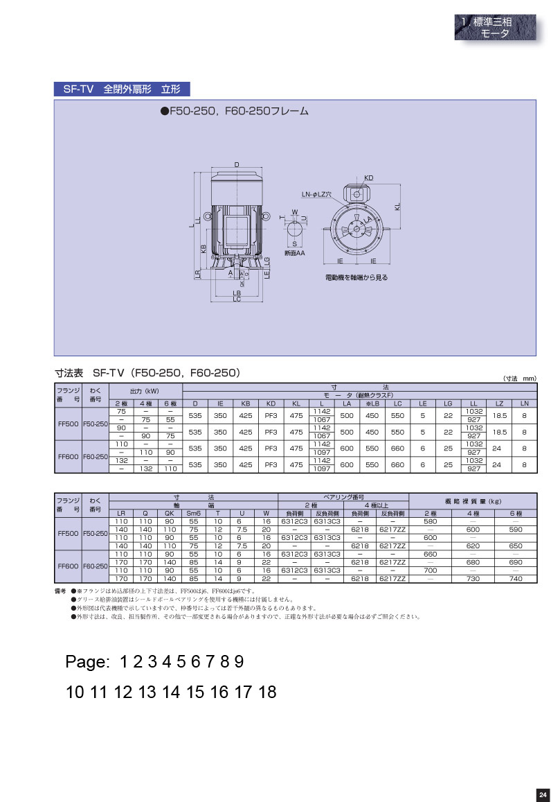全閉外扇型SF-TV 立形 機座號:F50-250,F60-250