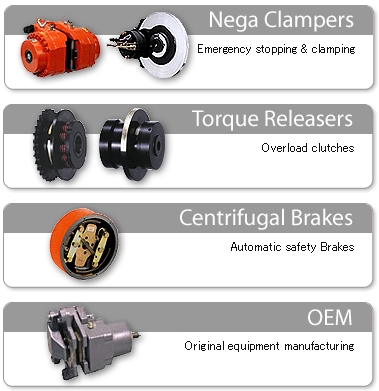 SUNTES Nega Clampers Spring force clamps the discs. Electromagnetic or hydraulics force releases the disc. The clampers are principally used for winding machines. The Nega Clamper can be used in hazardous conditions as in an emergency. Rail clampers hold the rails securely and prevent mobile cranes on tracks moving in high winds. Spring force clamps the discs and electromagnetic force release the disc. This electromagnetic clamper especially designed for clamping is also used for emergency situations. Various sizes are available for elevator stop positioning. The benefits and usage of this device are numerous. Elevator Multistory Parking Click to open the list (PDF file) Spring force clamps and hydraulic force release it. This hydraulic camper is a disc brake type and is designed for clamping.The clamper can accommodate positional clamping such as a port facility or in sever conditions as in steel manufacturing machines. Steel works ladle crane dam Click to open the list (PDF file) Two types are available; rail clamper type in which the spring force clamps both sides of the rail and hydraulics releases it, and the rail brake type that hydraulics releases the clamp pressing the wheel tread. For safety in a stormy wind, the Rail Clamper is used to clamp mechanical handling equipments such as a massive port crane on a track.