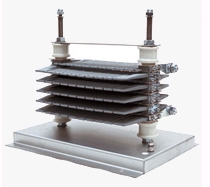 GINO braking resistors GINO braking resistors take on the excess energy of a driven motor thereby slowing it down. The driven motor takes on the role of a generator. The current direction and moment reverse and the generator tries to counter-act the drive forces, i.e. it brakes. Modern drive technology now only operates with three-phase motors. A slip ring motor with power supply from the grid with a reversed field takes the role of a generator, supplies its energy to the resistors in the rotor circuit and is thereby slowed down. However, state-of-the-art drive technology almost exclusively uses squirrel cage motors. Where the speed is to be controlled, static frequency converters are used which, in a first step, convert the line voltage to direct voltage (d.c. link voltage) and then into a three-phase output voltage with variable frequency. The motor speed follows the frequency at the outlet of the frequency converter. If the frequency is smaller than the actual speed, the motor becomes oversynchronous and turns into a generator that returns the excess energy. The energy is taken on by a braking resistor installed in the intermediate circuit. This may occur in the form of brief surges or, as in the case of a train driving downhill, of energy acting for a longer period of time. The braking resistor must be capable of taking on both brief surges and the specified continuous load. In principle, all designs are suited for application as braking resistor. For smaller drives, wire-wound resistors are often used while larger drives require cast iron, steel grid or ribbon-wound resistors. GINO cast iron resistors GINO cast iron resistors use cast iron as resistor conductors. Cast iron is a very economical material, particularly for resistors used for intermittent or short-term operation where the storage capacity is most important. For this application, the iron is cast into plates with wave-pattern rods. The diameter and length of the rods as well as the material characteristics determine the resistance of the element. Several different elements with varying rod diameters and lengths but with the same connection and fixing points form a system. In addition to the latest in cast iron resistor systems (GINO, SIEMENS 3PR3…) GINO GmbH also manufactures and supplies spare parts and spare elements for most systems ever sold on the marketplace. The main field of application for cast iron resistors are starting and rheostat resistors for drives, particularly drives with a slip-ring motor, which are increasingly replaced by drives controlled with static frequency converters with squirrel cage motor. Other applications are grounding resistors where an optimum price/performance ratio of the storage capacity is most important GINO damping resistors GINO damping resistors in general are resistors that have the task to limit the current in a circuit or prevent inadmissibly high current or voltage peaks. Particularly the resistors used in filter circuits are called damping resistors and are switched in parallel to the reactance coils to dampen them. The resistor takes on the voltage peaks that form in the reactance coil thereby preventing inadmissible voltage surges. It reduces the circuit quality factor thus resulting in a larger filter bandwidth. GINO excitation resistors GINO excitation resistors are starting resistors for magnet coils. Magnet coils are usually wound with copper conductors. Copper has a relatively large temperature coefficient of the resistance value so that a coil at operating temperature has a resistance value that is up to 20% higher than that of a cold coil. Consequently, a magnet coil usually has a lower intrinsic resistance as compared to its nominal voltage. A starting resistor, the so-called excitation resistor, adjusts the desired operating current to be achieved at operating temperature. Moreover, excitation resistors made from a suitable resistor alloy also compensate the temperature coefficient of the total resistance in a circuit. A typical example for an excitation resistor is the field resistor of d.c. machines which adjusts the excitation current and thus the speed of a motor or the voltage of a generator. Fast response resistors are starting resistors for magnet coils that alter the pickup properties of the coils. The coil is operated with a starting resistor at a higher, mostly double, nominal voltage. The starting resistor reduces the time constant of the total circuit T = L/(Rv+Ri), results in a faster current rise and thus in a faster build-up of the magnetic field. Another way to reach this objective is to excite the coil with a high current and then insert an upstream economy resistor. However, this solution is only feasible when a change of the excited magnetic circuit results in the same magnetic induction as during the starting phase. A typical example would be the power contactor with d.c. excitation. GINO grounding resistors GINO grounding resistors. In medium voltage grids with low-resistance neutral grounding, grounding resistors restrict any ground fault current to a maximum admissible value until the corresponding protective relays have switched off the defective circuit. In compensated grids where the neutral points are grounded via inductivities, they serve to localize any existing ground fault by briefly connecting the neutral point of the transformer to a resistor to increase the effective component of the fault current. Grounding resistors are typical resistors for short-term applications. Their main feature is their energy storing capacity. Therefore, cast iron resistors are often selected for such applications. GINO ribbon-wound resistors GINO ribbon-wound resistors are a special type of sheet resistors. Small sheet strips or ribbons are used as resistor conductors that are either flat-wound or edge-wound, applied as wave-form spiraled structures or connected in series as individual strips with terminals, by hard-soldering or welding. With this met