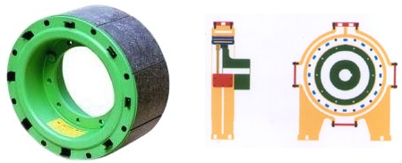 SHIN YOUNG AIR CLUTCH AIR BRAKE E-TYPE gurantees the constant working condition by the compulsory circulation method (water or air cooling) which reduces the operating heat from the inner part of the clutch(brake) itself. - Good heat radiation with the compulsory water or air cooling structure - Fuel effective, Easy assembling and installation - Easy replacement of lining. ? ADOPTIONS - coiler, uncoiler : control for the constant tension - textile processing machine. line conveyor of the automation machine ITEM MODEL PORDUCED TOROUE USED AIR PRESSURE(㎏/?) WEIGHT (㎏) GD2 (㎏,㎡) RUBBING SPACE (IN2) LINING QUANTITY MAXIMUM AIR CAPACITY ROTARY SEAL 1 5 8 SY-304E140 25 125 200 12 0.86 176 8 0.65 PT 3/4 SY-355E140 35 175 280 16 1.41 204 10 0.78 PT 3/4 SY-406E140 47 235 376 20 2.38 231 12 0.82 PT 3/4 SY-482E140 69 345 552 26 4.41 279 12 1.01 PT 3/8 SY-546E140 89 445 712 29 7.12 315 14 1.15 PT 3/8 SY-609E140 114 570 912 32 10.01 349 16 1.31 PT 3/8 SY-685E140 147 735 1176 41 15.2 392 18 1.54 PT 3/8 SY-762E178 233 1165 1864 64 32.1 558 14 3.21 PT 1/2 SY-863E178 301 1505 2408 86 53.8 631 16 3.57 PT 1/2 SY-1016E208 494 2470 3952 122 99.7 875 18 5.25 PT 3/4