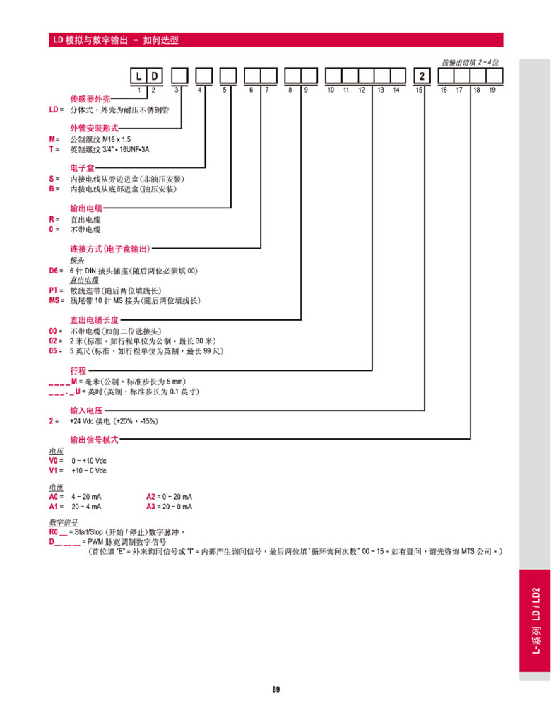 MTS_89 LD和LD2模擬與數(shù)字輸出的選型