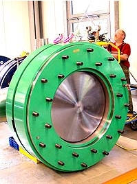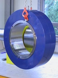 As fixing elements for friction-locked shaft / hub connections, hydraulic shrink discs have prevailed in many areas of drive technology. Today, thousands of these products are found in the drivelines of wind energy plants and also increasingly in industrial applications for the transmission of large torques. Examples and images from the field of development >> In TAS-Schafer GmbH's TAS-SHS products, the basic principle of the mechanical, three-part shrink disc has been retained. This principle has been extensively and frequently tested. Here, the power-transmitting friction surfaces are strictly separated from the hydraulic system, thus preventing these surfaces from being exposed to oil. The great advantage of the hydraulic TAS SHS shrink disc lies in the tremendous time savings during installation. This system can be tensioned at a pressure of between 120 bar and 200 bar, thus considerably reducing the installation time. This time reduction increases exponentially with the diameter of the connection. With larger diameters, e.g. 530 mm, a hydraulic shrink disc is tensed after only a few minutes. This compares to several hours' tensioning time required for a mechanical shrink disc. The hydraulic pump required for assembly may constitute a stationary unit, e.g. at test stations and assembly areas, but the use of a hydraulic hand pump is also possible. In this way, the system can also be tensioned at difficult-to-reach places. A typical application is the turret of a wind turbine. The dismantling of the TAS-SHS is also supported by the hydraulic system. The time needed, and the physical strain put on engineers and maintenance staff can thus be significantly reduced. Even after a long operating life of several years, when, depending on the site, e.g. seals no longer work, the TAS-SHS shrink disc can be removed like a mechanical shrink disc by loosening the screw connection without further pressurisation.